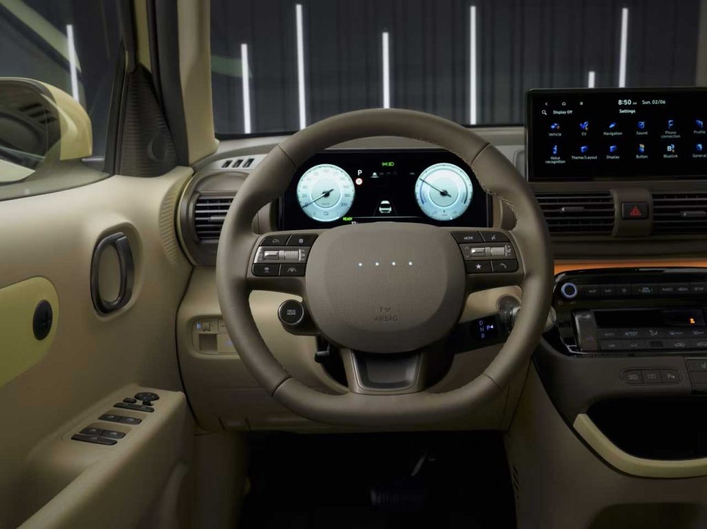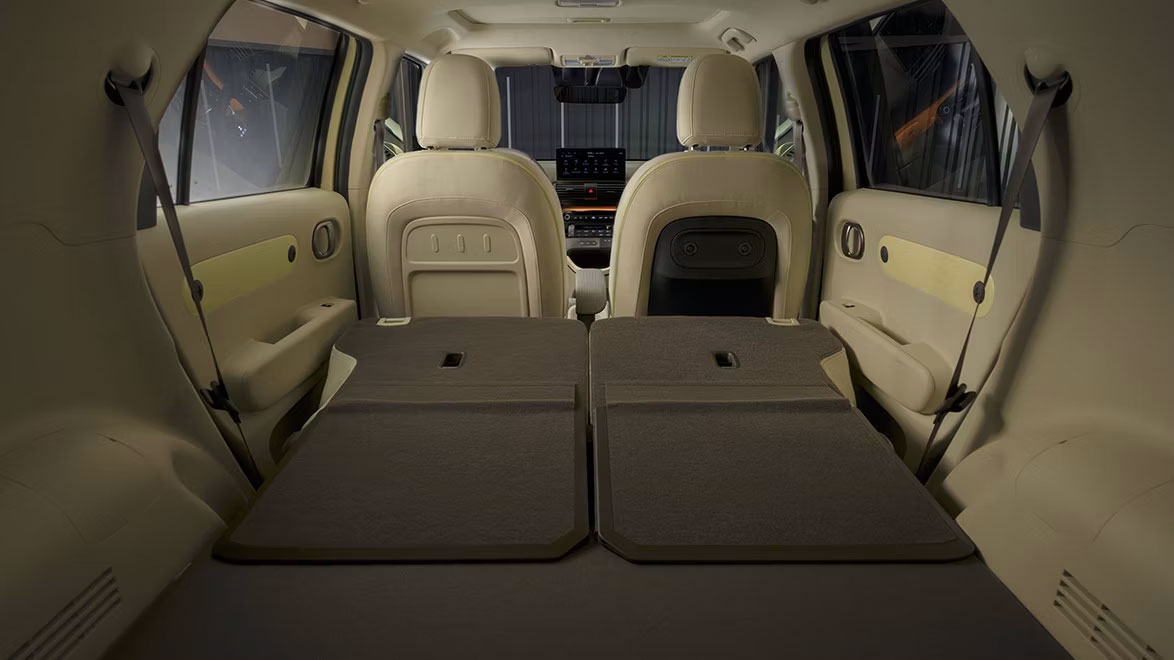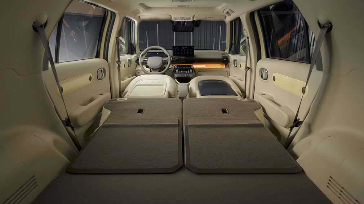 Unutrašnjost Hyundai INSTER-a nije samo elegantna i moderna, već je i vrlo praktična: neprekinuti prednji red sjedala nudi posebno lak pristup vozačevim i suvozačevim sjedalima. Sva sjedala – uključujući vozačevo – mogu se preklopiti, a sjedala djeljiva u omjeru 50:50 u drugom redu također se mogu pomicati po dužini.