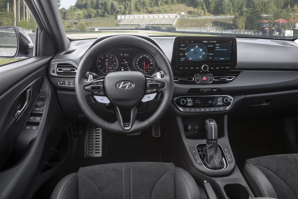 Unutrašnjost novog i30 N usredotočena je na povezivanje vozača s automobilom u svim dodirnim točkama. Analogni sklop uključuje značajke poput aktivne promjenjive LED crvene zone, koja se razlikuje ovisno o temperaturi motornog ulja, i indikator vremena prebacivanja stupnja prijenosa, koji vozaču pokazuje najbolji trenutak za prebacivanje stupnjeva prijenosa. Novi i30 N dostupan je i s grijanim upravljačem i grijanim prednjim sjedalima.